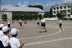 学校では、校庭において陸上練習が、プールでは、下学年、上学年の順で水泳教室が行われました。