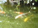 池を泳ぐ錦鯉や3羽のウサギたちも、元気に餌をほおばっていました。