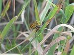 昆虫の体液を吸うアオメアブ(ハエ目ムシヒキアブ科)