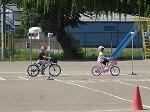 学校では、1~4校時に、3~6年生の順で、自転車を使った交通安全教室を行いました。