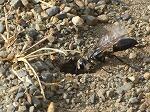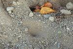 朝の校庭巡回中、開花したヒガンバナと、ソメイヨシノの根元に作られたウスバカゲロウ(アミメカゲロウ目ウスバカゲロウ科)の幼虫の巣(アリジゴク)と出会うことができました。