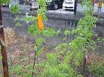 8月には珍しく、サクラの葉が落ち始めています。