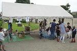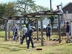 朝8時から開会行事を行い、教室清掃や除草、藤棚下ベンチのペンキ塗り、網渡りアスレチックの撤去作業などに取り組む予定です。