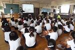 学校では、2校時からチャレンジタイムに掛けて、県トラック協会のご協力を得て、1・2年生の交通安全教室を行いました。