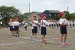 前半は、鼓笛演奏に合わせた入場行進から、開会式、ラジオ体操、そして、退場の練習を行いました。