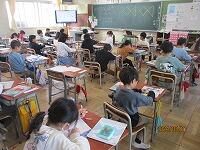 3年生と4年生は、書写がありました。3年生は「水玉」の文字を、4年生は「出発」の文字を、それぞれの学年で学習した知識や技能を生かして、一人一人が真剣に書いていました