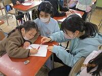 6年生は、色紙に一文字の卒業制作です。本校の元校長先生でいらっしゃった大塚幸一先生に教えていただきました。全員真剣な表情で、自分の一文字と向き合っていました。卒業式に掲示する予定です。どうぞお楽しみに!!