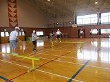 平均台を、横向きで歩くのはなかなか難しいです。平均台から落ちないように慎重にバランスをとって歩いています。集団のきまりを守って、取り組んでいます。