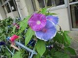 1年生の朝顔・・・どの鉢も、美しい花を咲かせています。