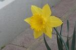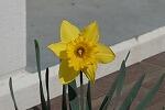 今朝の校地巡回中に出会ったカワセミの雌と花壇に咲くラッパスイセン。