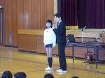 校長先生の式辞やPTA会長さんから祝辞を頂いた後、在校生との対面式を行いました。
