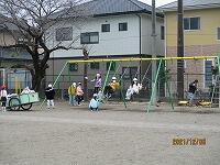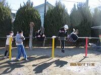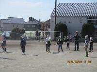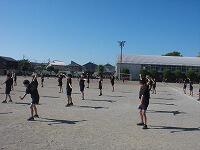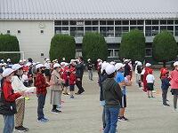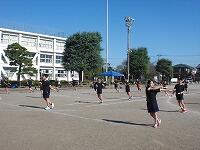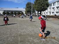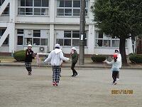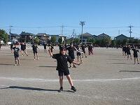 校庭では、縄跳びやドッジボールなどで、クラスごとに元気に遊んでいます。