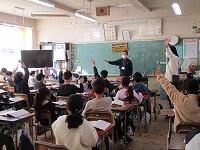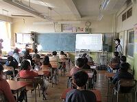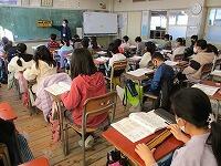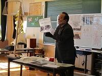 群馬の博物館や、栃木市役所から借りてきてくださった写真や絵、地図、などをいろいろお持ちくださり、子供たちは、興味津々。しっかりした態度で話しを聴き、本物に触れることで、学びを深めていました。