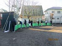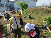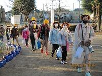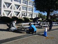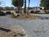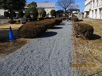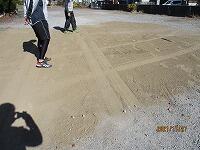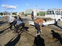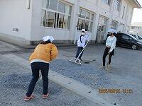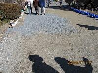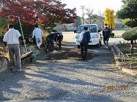 6年の先生方、6年生が進んで手伝ってくれ、砂利を敷くことができました。