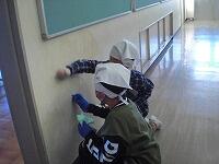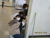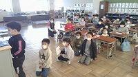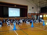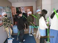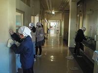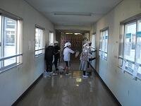 5年生が、卒業式に向けて、自主的に体育館床の水拭きをしていました。ワックスをかける前に、床をきれいにするためです。何人もの5年生が、よい卒業式にしようと本当によく頑張っていました。