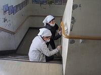 ステージに上がる階段も、技能員さんが、きれいにペンキを塗ってくださいました。