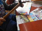 2年生に招待してもらった「おもちゃパーティ」では、たくさんのお店がありました。2年生に教えてもらいながら、たくさん遊ばせてもらいました。楽しいおもちゃがたくさんあって、大満足でした。