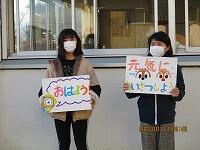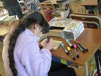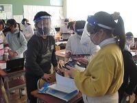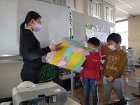 代表の児童が、6年生の教室メッセージカードを届けました。