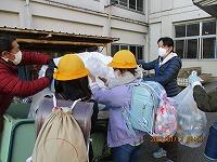 会議後、前PTA会長の森川様はじめとする役員の皆様から使わなくなったランドセルの寄贈がありました。