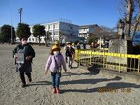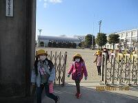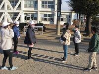 1年生の体育の時間も参観していただきました。1年生は、持久走大会のコースを歩いて確認したり、トラックを走ったりしました。