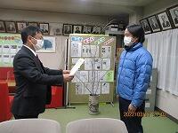 令和3年度栃木市教育振興大会社会教育功労者表彰があり、長年登下校見守り隊で本校に貢献されている 小山恒男様が受賞され、賞状をお渡ししました。