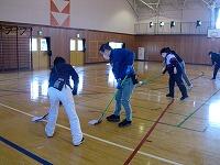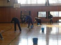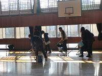 卒業式に向けて、放課後、職員作業で体育館のワックスがけを行いました。
