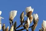 春の暖かさに誘われて咲き始めたハクモクレンとセイヨウタンポポ。