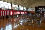 先日ワックスをかけた床がピカピカと輝く中、紅白幕を張ったり、椅子やテーブルを並べたりしました。
