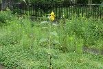 暦の上では立秋を迎え、朝の校地巡回中に秋探しをしたところ、ごみステーションの陰で、花を咲かせ始めたキバナコスモスと出会うことができました。