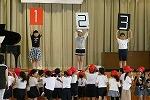運動委員と一緒に、各学年ごとのめあてを唱和しました。