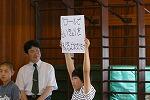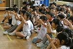 学校では、オープンタイムに、体育館で、プール開き集会を行いました。