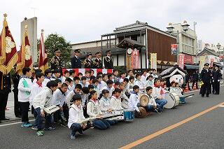 6年生鼓笛隊が市消防団分裂行進を先導行進しました。