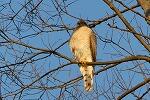 先週の土曜日の朝、校庭巡回中に、校舎西のエノキにとまっている猛禽類ハイタカ(タカ目タカ科)と出会うことができました。