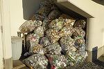本日、アルミ缶回収最終日を迎え、ボランティア委員会が、集まったアルミ缶を大きな袋に詰めたり、重さを量ったりしました。