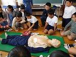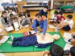 まず、心臓マッサージの方法やAEDの使い方を教えていただいた後、
