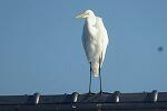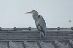 北校舎の屋根の上には、ダイサギとアオサギ(ペリカン目サギ科)と。