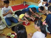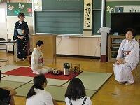 今年も7月12日(火)に「例幣使街道を考える会」の岡田陽子さんを講師としてお招きし、6年生全員に「茶道教室」を実施しました。お茶の作法以外にも、「一期一会」の精神や「あいさつの仕方」「座り方」など礼法も教えていただきました。大変勉強になりました。お世話になりました。