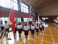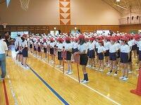 いよいよ2学期が始まりました。みんな元気いっぱいの顔で登校してきます。2学期はいろいろな行事がたくさんあります。その中でも運動会は大きな行事です。各学年とも練習に熱が入っています。練習後は、例年暑くて大変でしたが、今年はクーラーが全学年に入りました。昇降口にはミストシャワーも設置して熱中症対策も万全です。