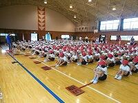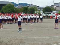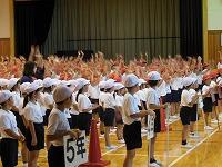 いよいよ運動会も近づき各学年とも大変熱が入ってきました。今日は、あいにくの雨ですが、体育館で全体練習をしました。