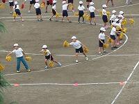 3年生の綱引き 紅組の勝ちでしたが本番はどうなるか