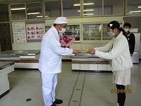 6年生児童代表が、感謝の言葉を述べたり、お手紙やお花を調理員代表の方に手渡したりしました。