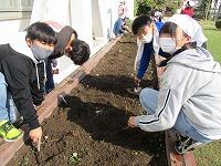 チューリップの球根植え 投稿日時 : 2021/10/26 栃木第三小管理者 更正保護女性会の皆様にいただいたチューリップの球根を、先日、栽培委員会の児童が植えました。 栽培委員が種から育てた葉ボタンを植えましたが、その間に植えていきます。 1年生も一緒に植えたいと合流しました。春にきれいなチューリップが咲くのがとても楽しみです。更正保護女性会の皆様、ありがとうございました。 Tweet {{options.likeCount}} {{options.likeCount}}