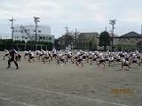 3校時、体育館では、1年生が運動会のダンスの練習をしています。