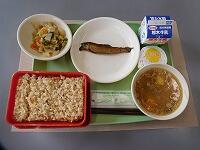 今日の給食 投稿日時 : 2022/09/09 栃木第三小管理者 今日の給食は、十五夜メニュー。 メニューは、五目ご飯、牛乳、鮎の甘露煮、ごまあえ、味噌けんちん汁、お月見デザート(みかん、ブルーベリー味) どのおかずも、とても美味しかったですが、特に鮎の甘露煮は、骨までやわらかく美味でした。 各クラスの様子です。 今日も、美味しく頂きました。 Tweet {{options.likeCount}} {{options.likeCount}}