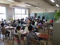 続いて始業式。新担任紹介や児童の作文発表、校長先生の話を聞きました。