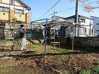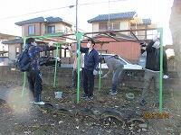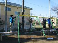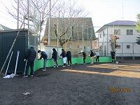 バックネットのペンキ塗り。野球部の皆さんが協力してきれいにペンキを塗ってくださいました。