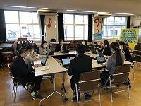 放課後、先生方の授業研究会。2班に分かれて話し合い、その後、発表。