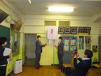 森川前PTA会長には、第31代PTA会長として本校PTA組織を取りまとめ、特に昨年度はコロナ禍での奉仕作業、また通学路変更など御尽力いただきました。本当にありがとうございました。今後もよろしくお願いいたします。