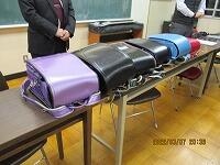 会議後、前PTA会長の森川様はじめとする役員の皆様から使わなくなったランドセルの寄贈がありました。