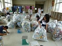 「おはようございます。」朝のあいさつ運動  「ビール缶が多いね。」アルミ缶回収